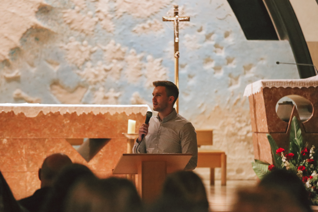 Ovoga tjedna na temu „Duh Sveti i preuzimanje odgovornosti“ govorio nam je i svjedočio voditelj zajednice Nanovo rođeni Mišo Lukenda. Kroz svoje svjedočanstvo okupljenima je ispričao primjere iz života u kojima je odgovorio na poticaje Duha Svetoga. Mišo je kao i većina mladih mislio da ako pusti Boga u svoj život, tada više ništa neće moći. To je đavlova taktika koja se nalazi na prvim stranicama Biblije. Đavao želi nagrditi sliku Boga što prije u našim životima kako bismo Bogu rekli ne. Nakon jednog susreta, dok je još bio u srednjoj školi, Mišo je iskusio milost Duha Svetoga. Od tada se njegov život uvelike promijenio.